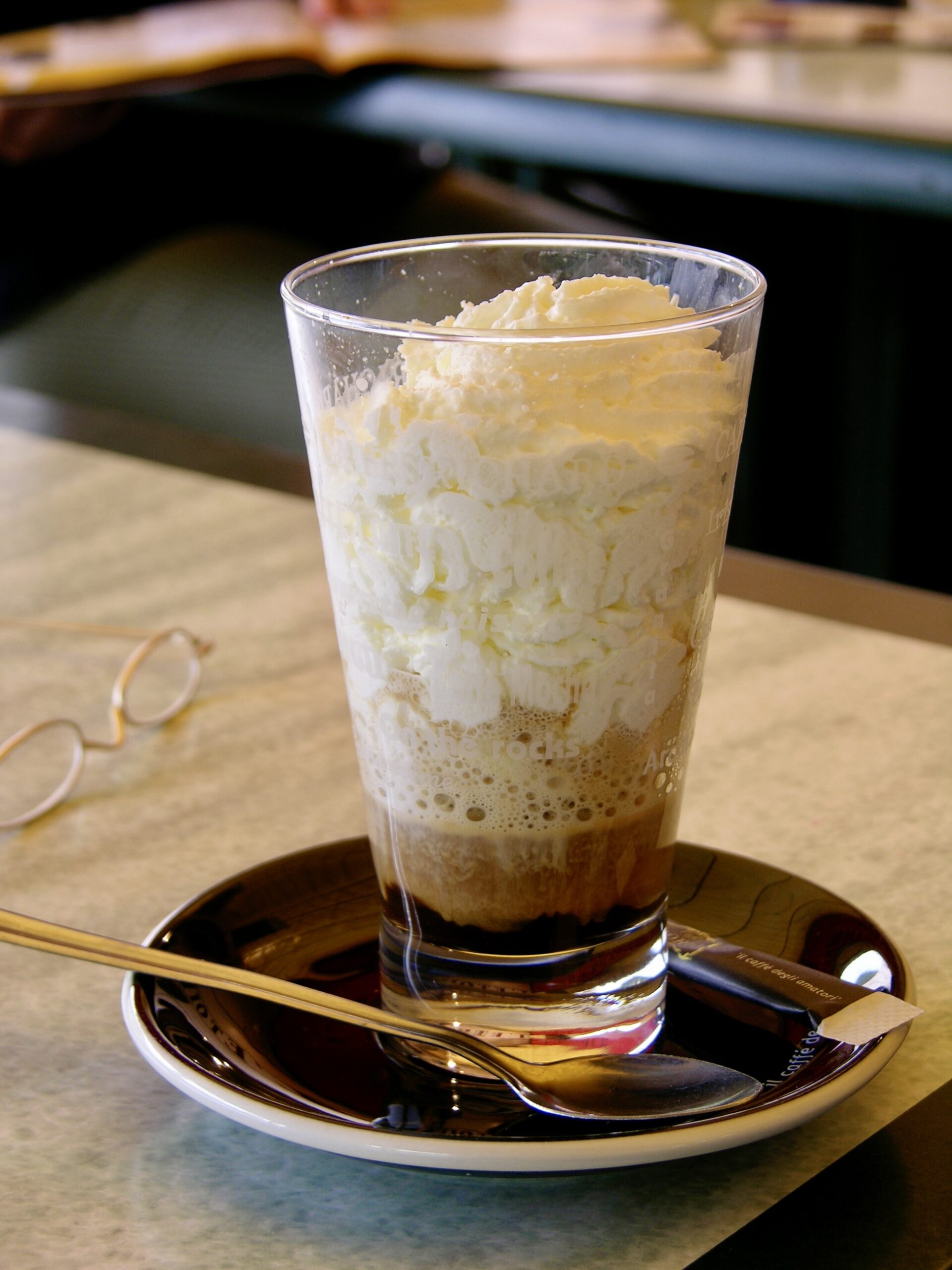 In 2004, we traveled by train to Grenoble, France. There, we ordered coffee: Rich, an Americano, and me, I tried something different. It was truly one of the most memorable cups yet. It was in a parfait-type glass, with a shot of espresso at the bottom and the top filled with whipped cream.