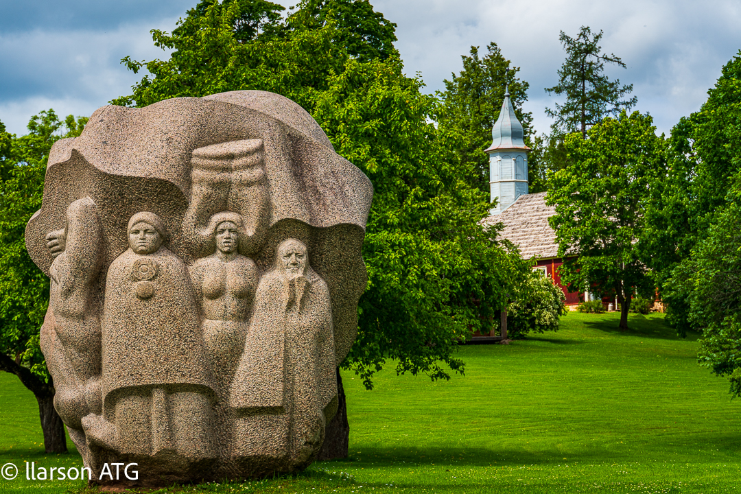 We arrived in Turaida (a region of Latvia), and visited the Hill of Dainas Folk Song Garden, a sculpture garden carved into a forested hillside. Latvia holds a national song festival every five years. The country has an archive of 100,440 folk songs, clearly enough to keep everyone singing. This garden illustrates the cultural heritage preserved in Latvian folk songs, featuring 26 sculptures created by sculptor Indulis Ranka.